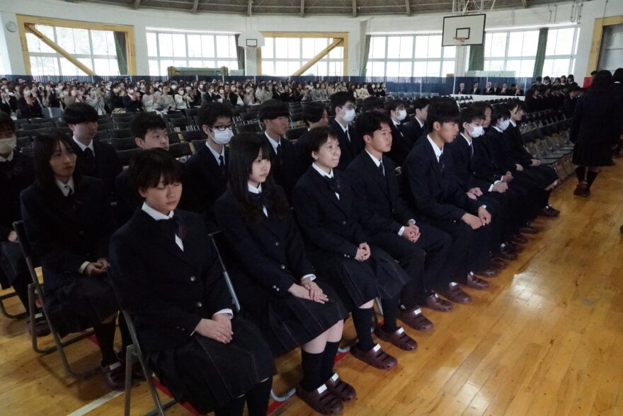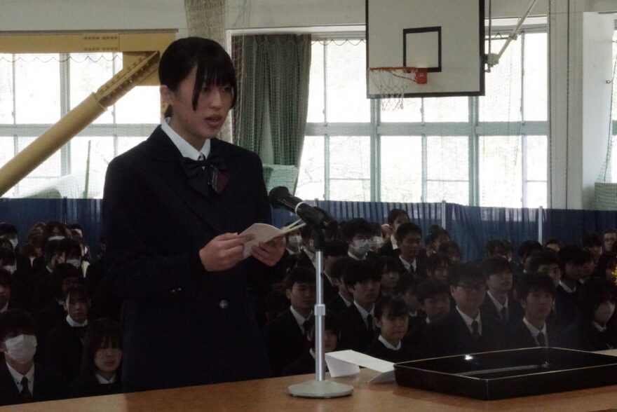 高等学校第67回・専攻科第54回 令和7年度の入学式を挙行いたしました。高校248名、看護専攻科30名の計278名が、新たな目標に向かって第一歩を踏み出しました。小平 崇 校長の入学許可、式辞の後、在校生を代表し、生徒会会長の岡﨑 玲奈さんが歓迎の言葉を贈り、それを受け、新入生を代表して佐川 柚葉さんが誓いの言葉を述べました。