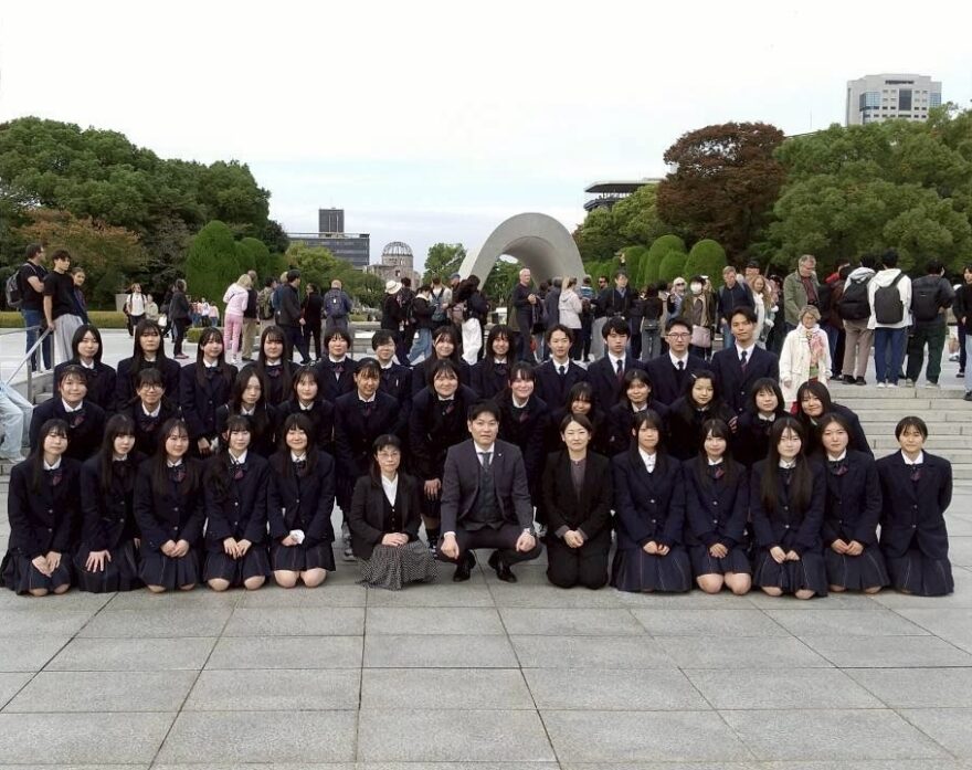 本日11月4日(火)から3泊4日の日程で、広島・関西方面への修学旅行が始まりました。生徒たちは福島駅に集合し、元気に出発しました。新幹線の中では、これからの旅への期待と少しの緊張が入り混じる中、友人と会話を楽しんだり景色を眺めたりしながら過ごし、広島には11時過ぎに無事到着しました。気温は20℃と、福島よりやや暖かく感じられました。