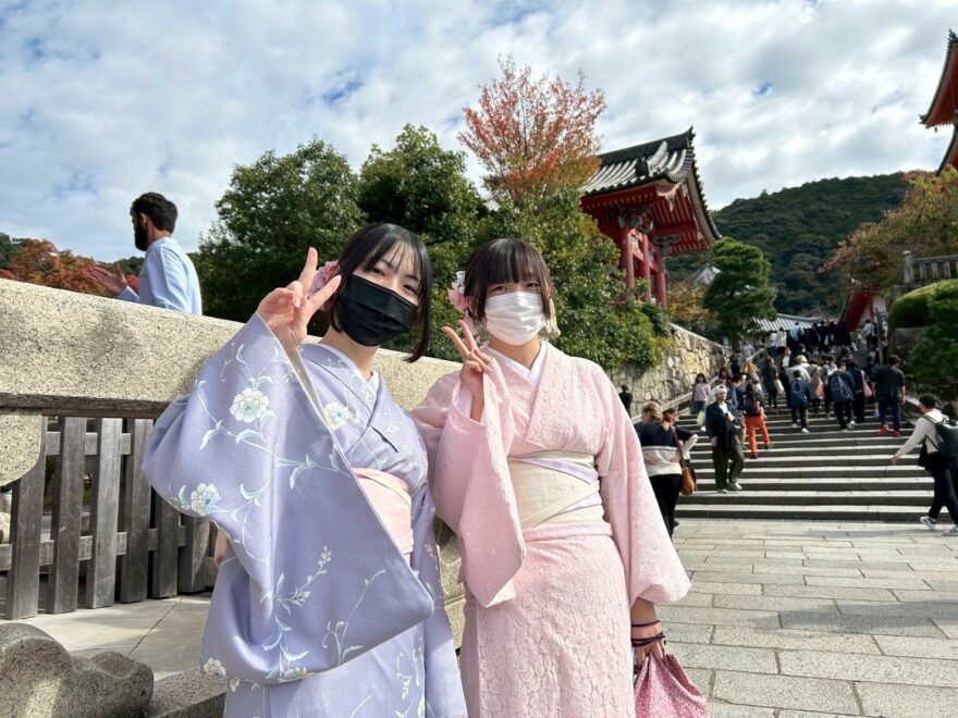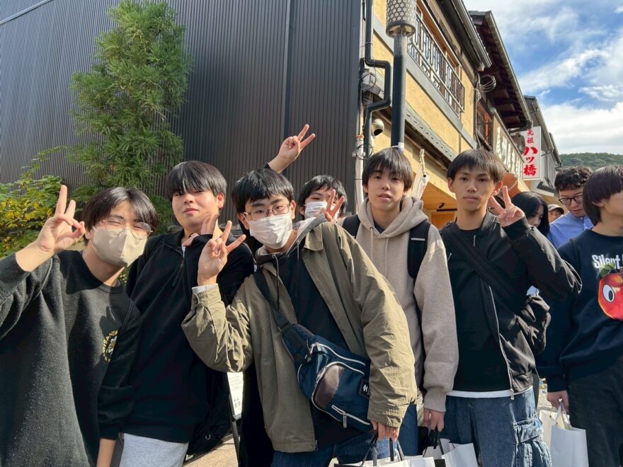 修学旅行3日目は、京都市内での班別研修を行いました。朝から快晴に恵まれ、心地よい秋の日差しの中、各班ごとに8時にホテルを出発し、活動を開始しました。清水寺や伏見稲荷大社などの観光や食べ歩き、着物体験など、京都ならではの魅力を思う存分に味わいました。観光地は多くの人で賑わっていましたが、時間を守り、協力しながら行動する姿が見られました。