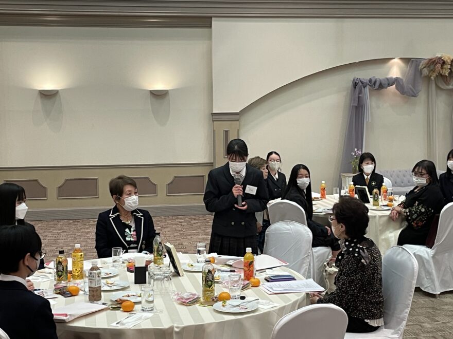 12月9日(土)、クーラクーリアンテサンパレスにて国際ソロプチミスト福島茶話会が開かれ、15名の女子生徒が参加しました。「夢を叶えるために 大切なことはなんですか」をテーマに、高校生が自分の将来の夢を語り、ソロプチミスト会員の方々からは夢を持つことの大切さや失敗を成功に変えるために何が大事かなど、様々な立場や視点からアドバイスをいただきました。また、実体験講話として(株)ウインスリーひかり 代表取締役社長 大内千春様のお話がありました。大内様は本校衛生看護科を卒業された大先輩!看護師として働き、その後介護の勉強をされ、会社を立ち上げ活躍されています。先輩のパワーあふれる生き方に高校生達はとても刺激を受けたようです。これから夢の実現に向けてますます学習や諸活動に力が入ることでしょう。すばらしい時間を与えてくださった国際ソロプチミスト福島の会員の皆様、本当にありがとうございました。