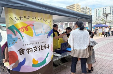 「ひだまりマーケット」は福島駅西口に人が集まる機会を提供することにより、人と人、モノとモノの交流により、福島駅西口の活性化を目的として昨年から開催されたイベントです。今回は『夏の朝を、ちょっと特別なひとときに』をテーマに開催され、43店舗が手作り雑貨等を販売していました。これまで参加した「軽トラ市」とは、また異なった趣でしたが、「まちづくり」「地域の交流」には、これからのふくしまの担い手である高校生(若者)が積極的に参加することに意味があるのかも、、、と感じました。