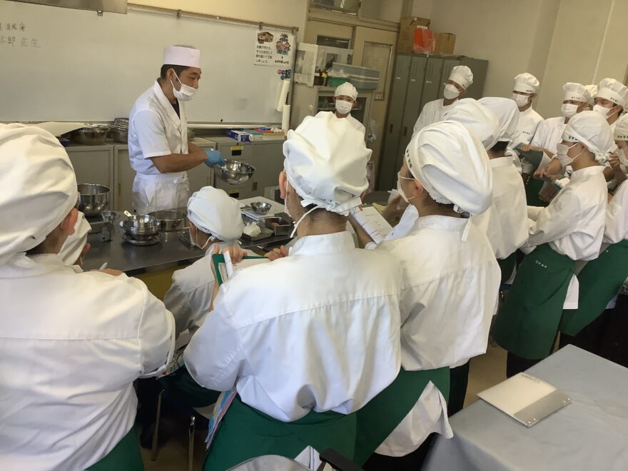 講師には、福島市北町の松屋清風庵の菅野翔太郎先生と食物文化科OGの若林花音さん