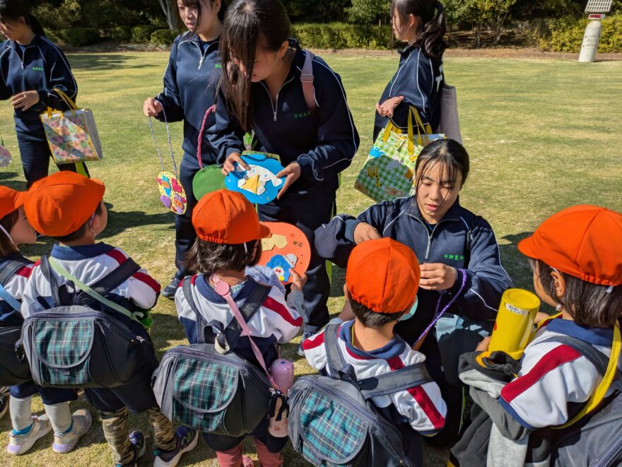 10/23(木)の午前中、信夫山駒山公園ににわさかこども園の園児たちが遠足に来ました。そこに3年生がおじゃまして、園児との交流を行いました。