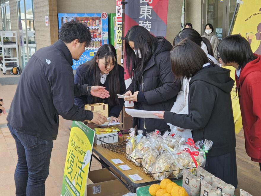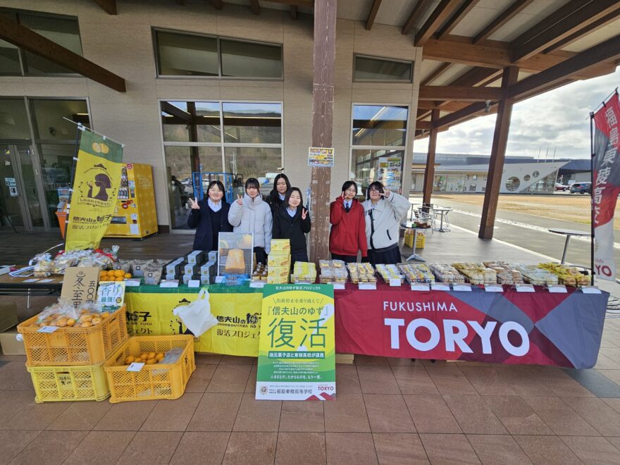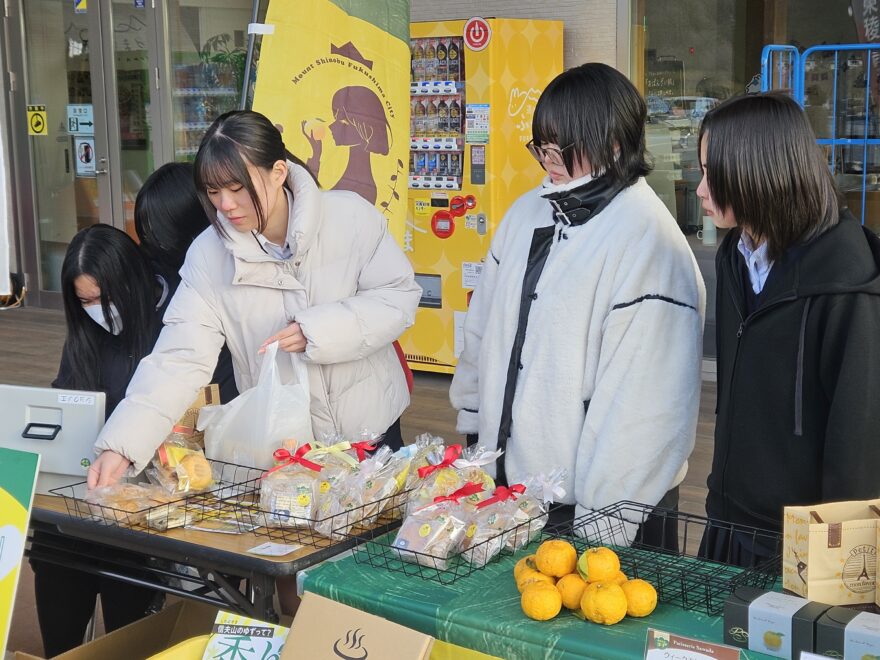 12月13日(土)に信夫山の「ゆず復活プロジェクト」に伴うゆずスイーツの販売会が道の駅ふくしまにて実施されました。季節柄極寒の中ではありましたが、本校生「ゆずガール」たちが一生懸命販売をいたしました。多くのお客様から応援のご声援をいただきました。またたくさんの商品をご購入していただまして、心より感謝申し上げます。本当にありがとうございました!